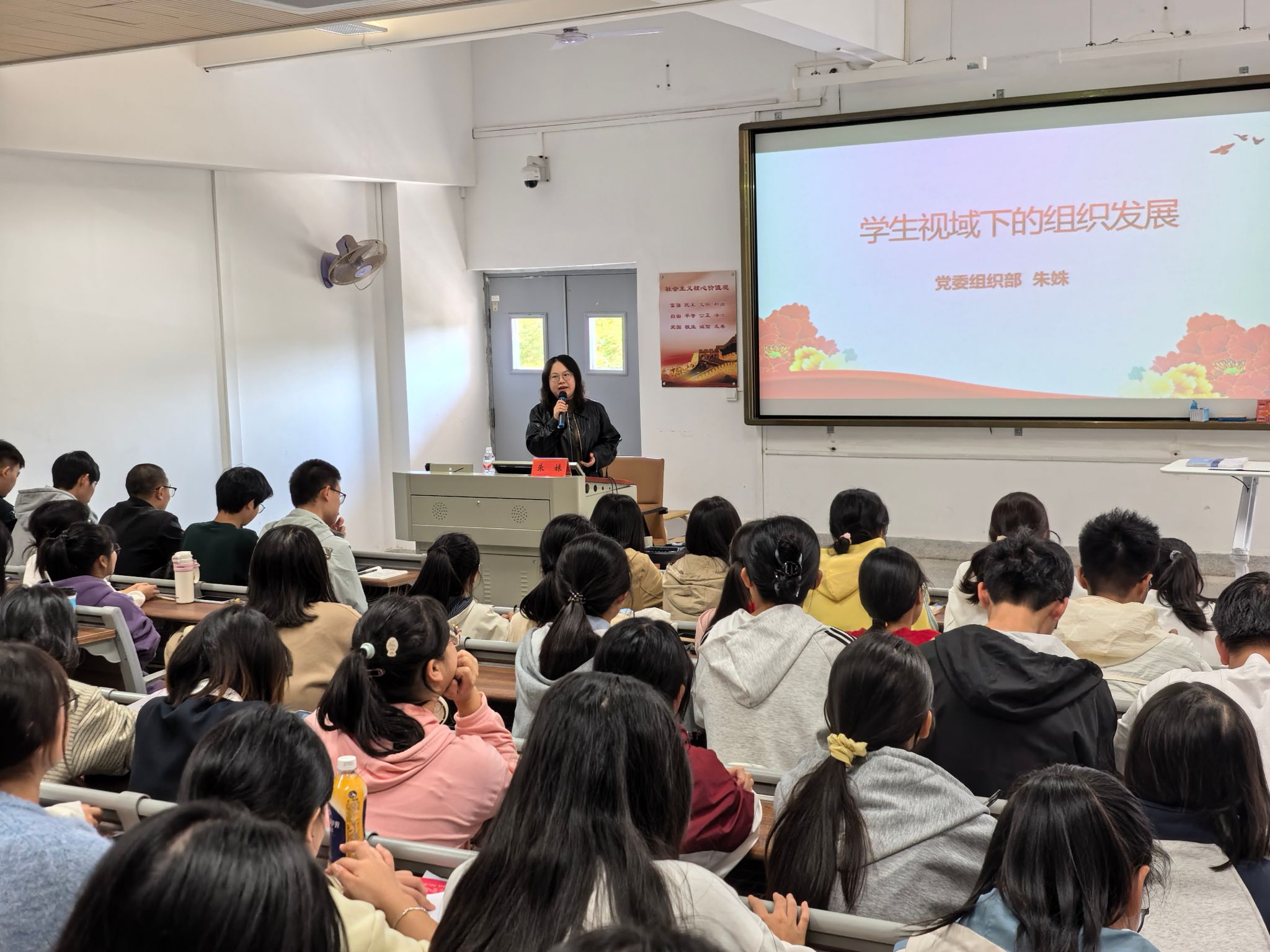 报告会上,朱老师以学生视角为切入点,深入浅出地阐释了发展党员环节与流程和常用入党文书的写作规范,就学生关心的入党程序、党组织生活、党员作用发挥等热点问题进行了专业解答,勉励同学们加强政治理论学习,不断提升综合素质,以实际行动争取早日加入党组织。