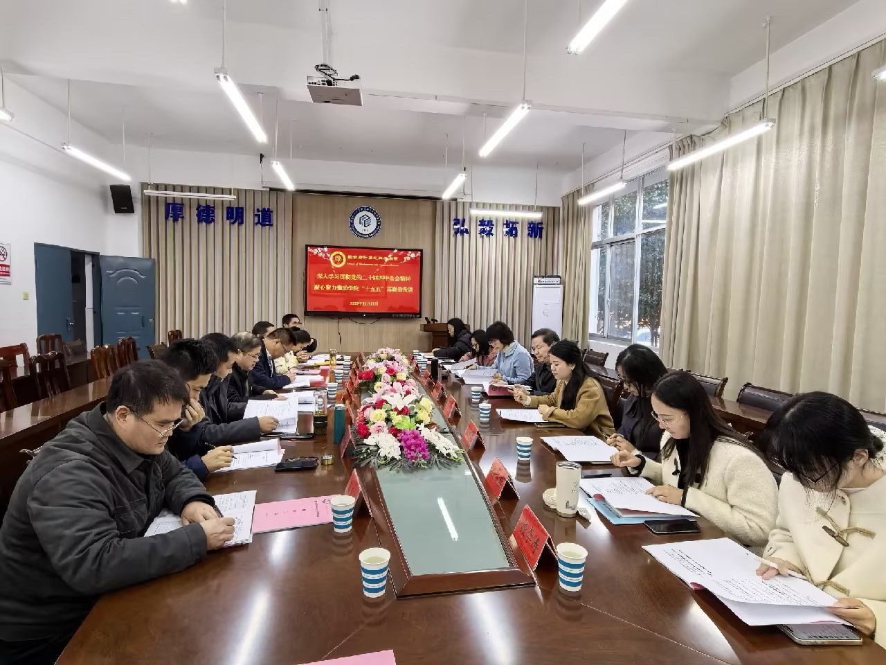 会议强调,学习好贯彻好党的二十届四中全会精神是当前和今后一个时期的重大政治任务,全院师生要深刻领会全会精神,把握高质量发展根本遵循。要坚持系统思维,做好顶层设计,全面对标《中共中央关于制定国民经济和社会发展第十五个五年规划的建议》提出的目标、要求、任务,把学院事业发展放到党和国家大局中去谋划,提前谋划好学院“十五五”规划编制;要树立大安全观,强化责任意识,防范化解安全风险,守住学院安全底线;要强化协同合力,破解发展难题,推动学院驶入教育改革发展快车道,让发展成果切实惠及每一位师生。