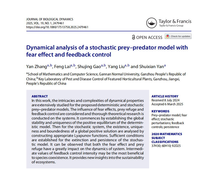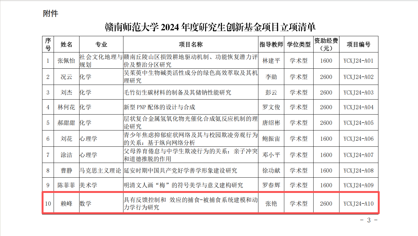 赖峰,男,2000年2月生,江西赣州人,2023级数学专业硕士研究生,导师张艳教授。
