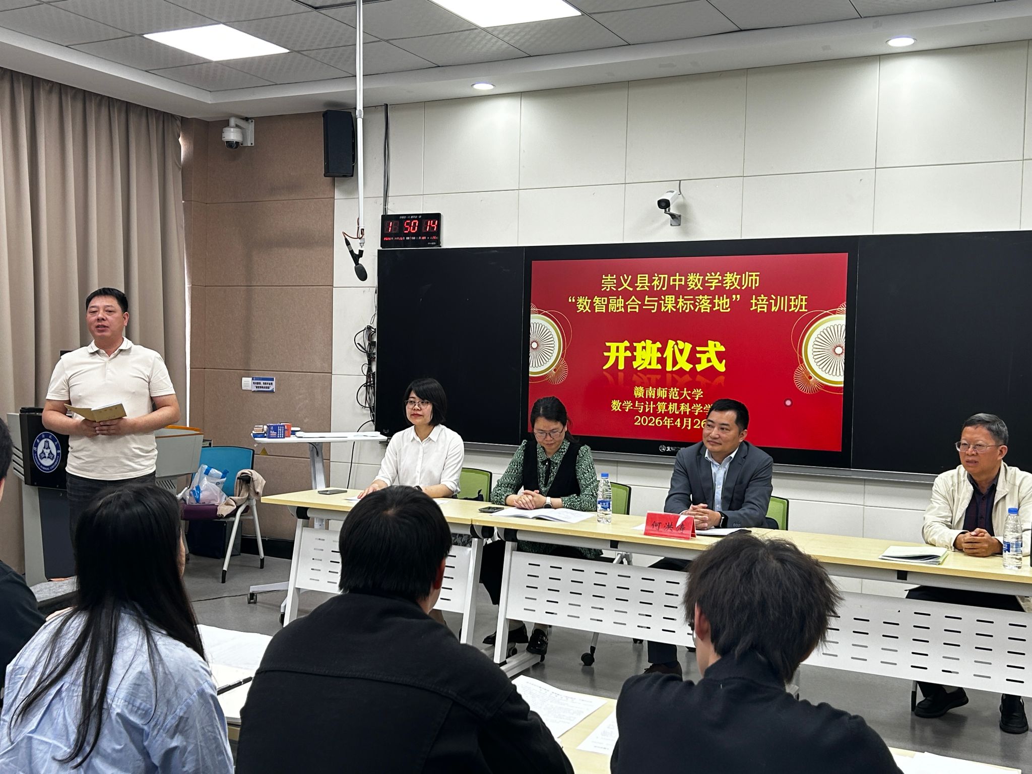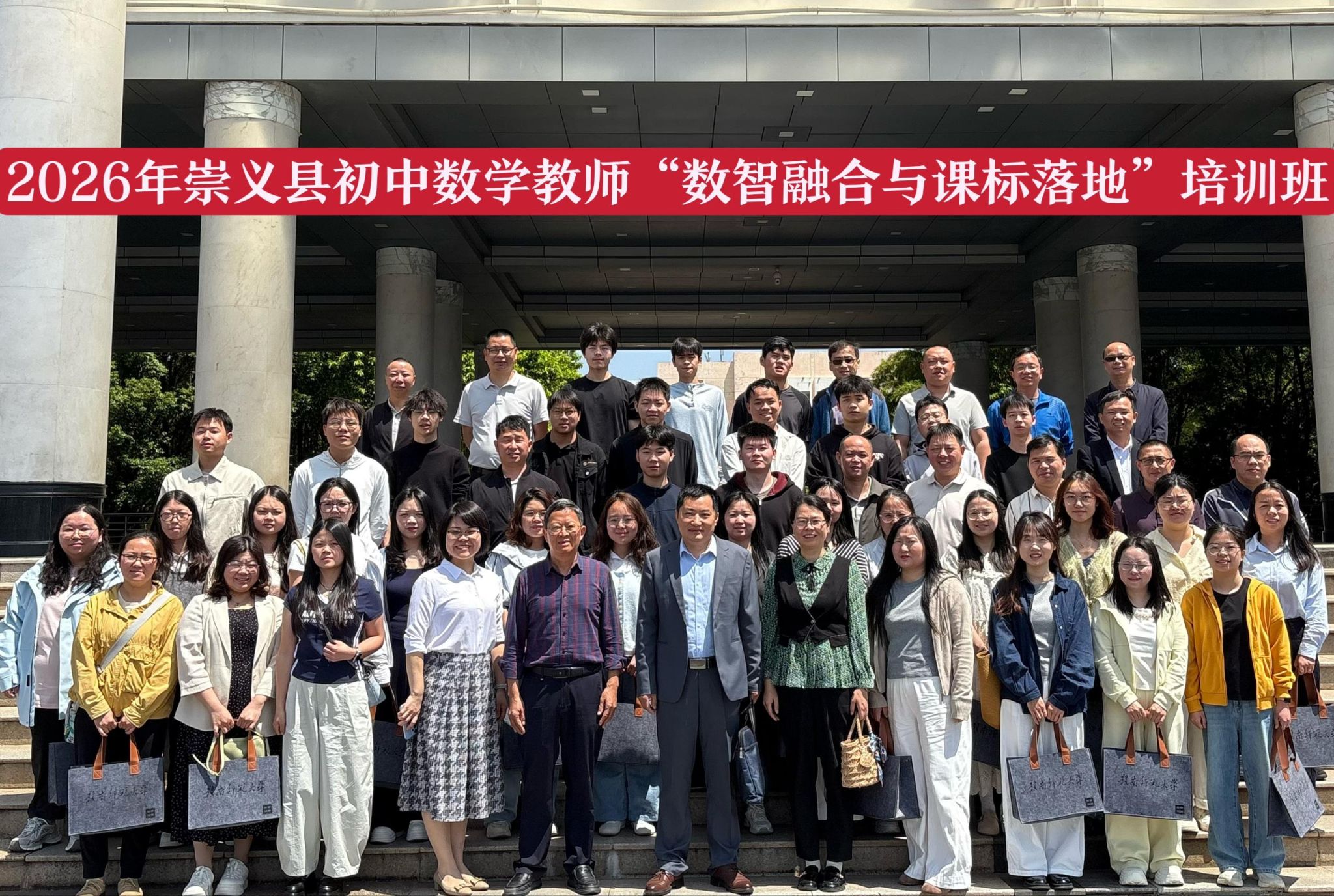 承办的2026崇义县初中数学教师“数智融合与课标落地”专题培训开班。培训为期三天,以“AI赋能教学”为主线,涵盖专家报告、同课异构与工作坊等环节。